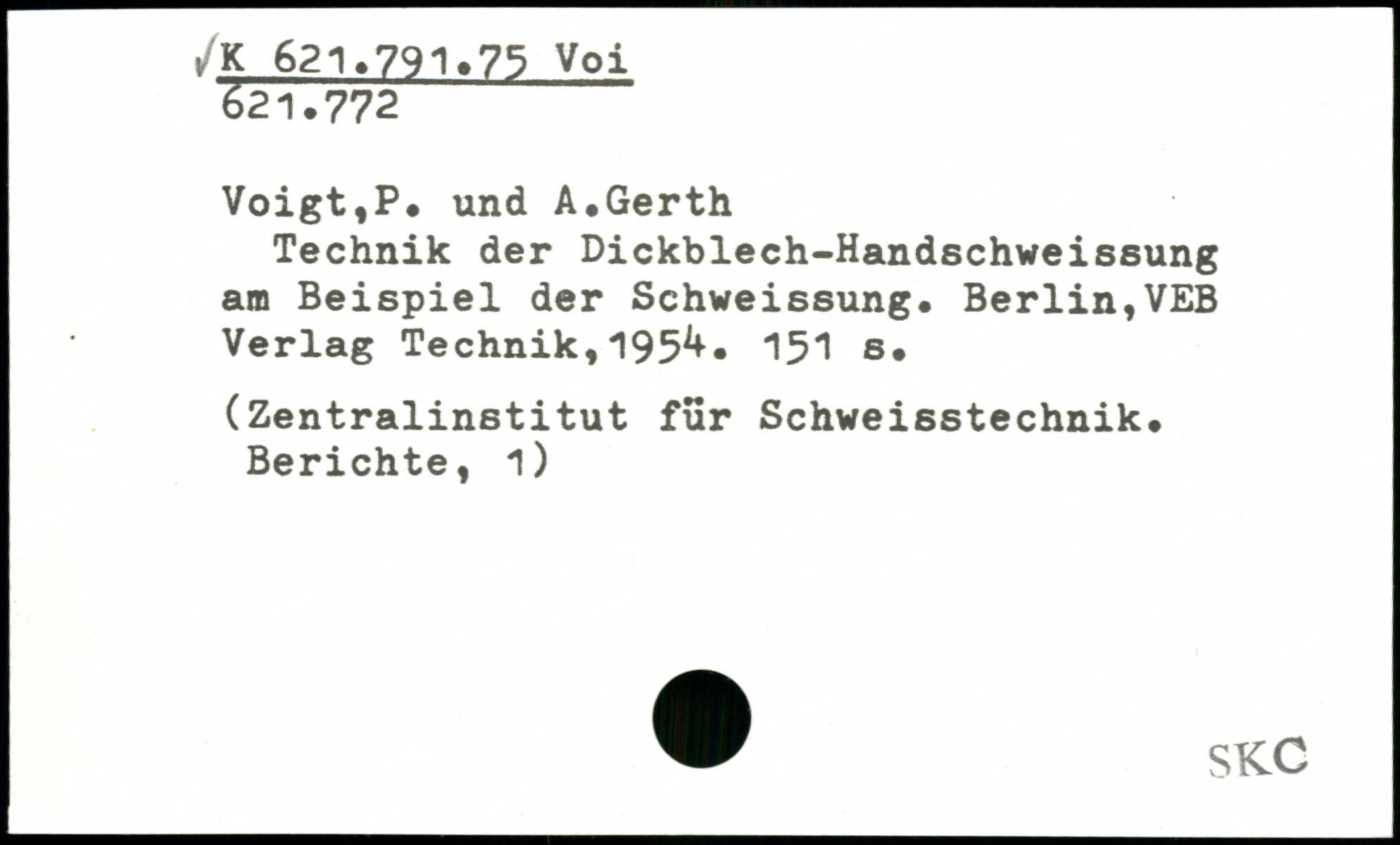 Technik der Dickblech-Handschweissung am Beispiel der Schweissung. Berlin,VEB Verlag Technik, 195^. 15.