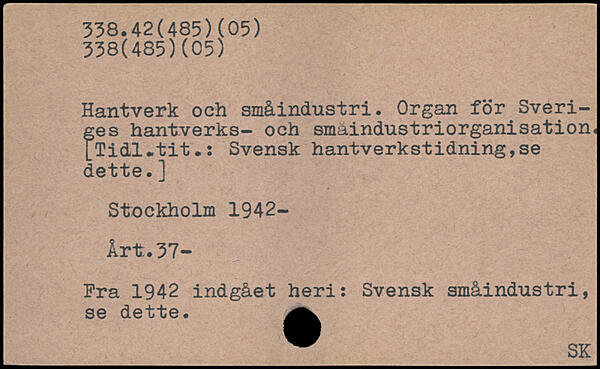 Hantverk och småindustri. Organ för Sveriges hantverks- och smaindustriorganisation, LTidl.tit.: Svensk hantverkstidning,se dette.