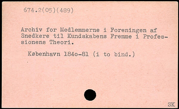 Archiv for Medlemmerne i Foreningen af Snedkere til Kundskabens Fremme i Professionens Theori. København 184o-81 (i to bind.)