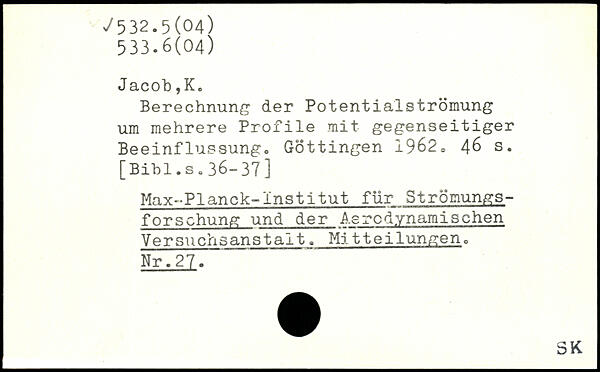 Berechnung der Potentialströmung um mehrere Profile mit gegenseitiger Beeinflussung. Göttingen 1962.