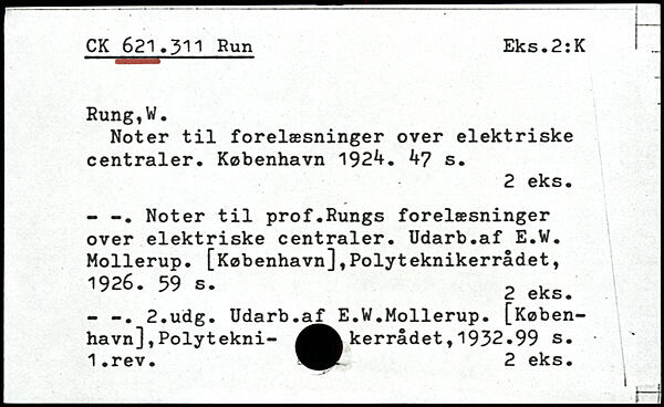 Noter til forelæsninger over elektriske centraler. København 19k