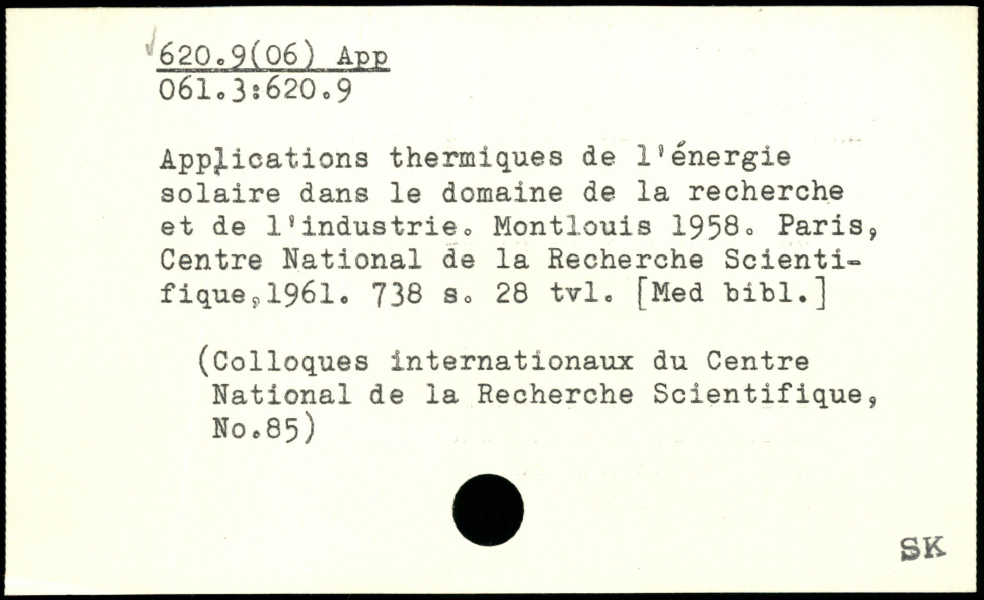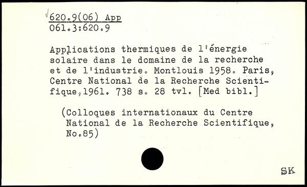 Applications thermiques de l’énergie solaire dans le domaine de la recherche et de l’industrie, Montlouis 1958. Paris, Centre National de la Recherche Scient!-fiquer1961.