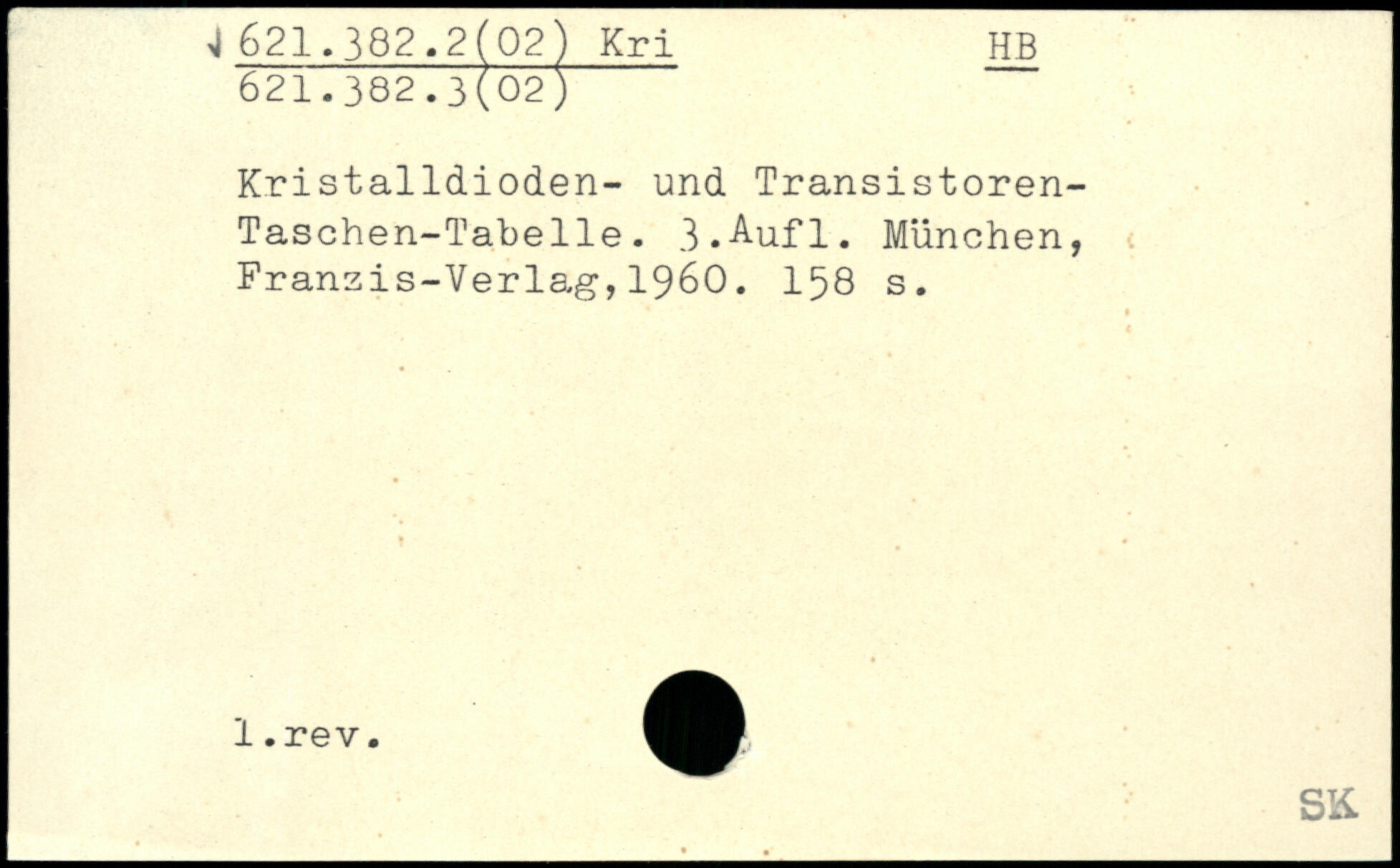 Kristalldioden- und Transistoren-Taschen-Tabelle. 3.^-ufl. München, Franzis-Verla,g, 1960. I