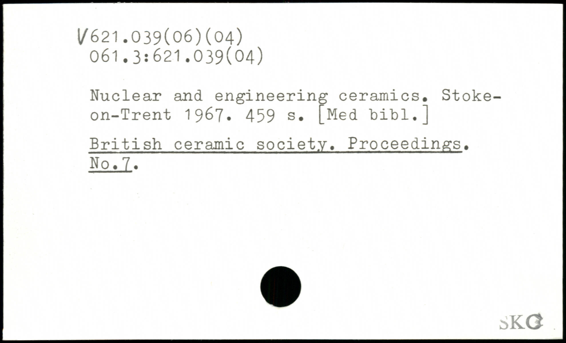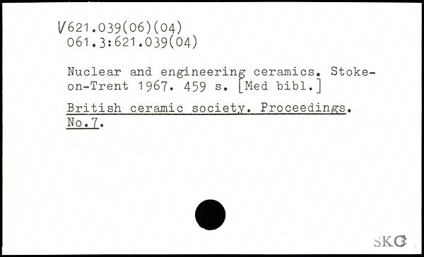 Nuclear and engineering ceramics. Stoke-on-Trent 1967.