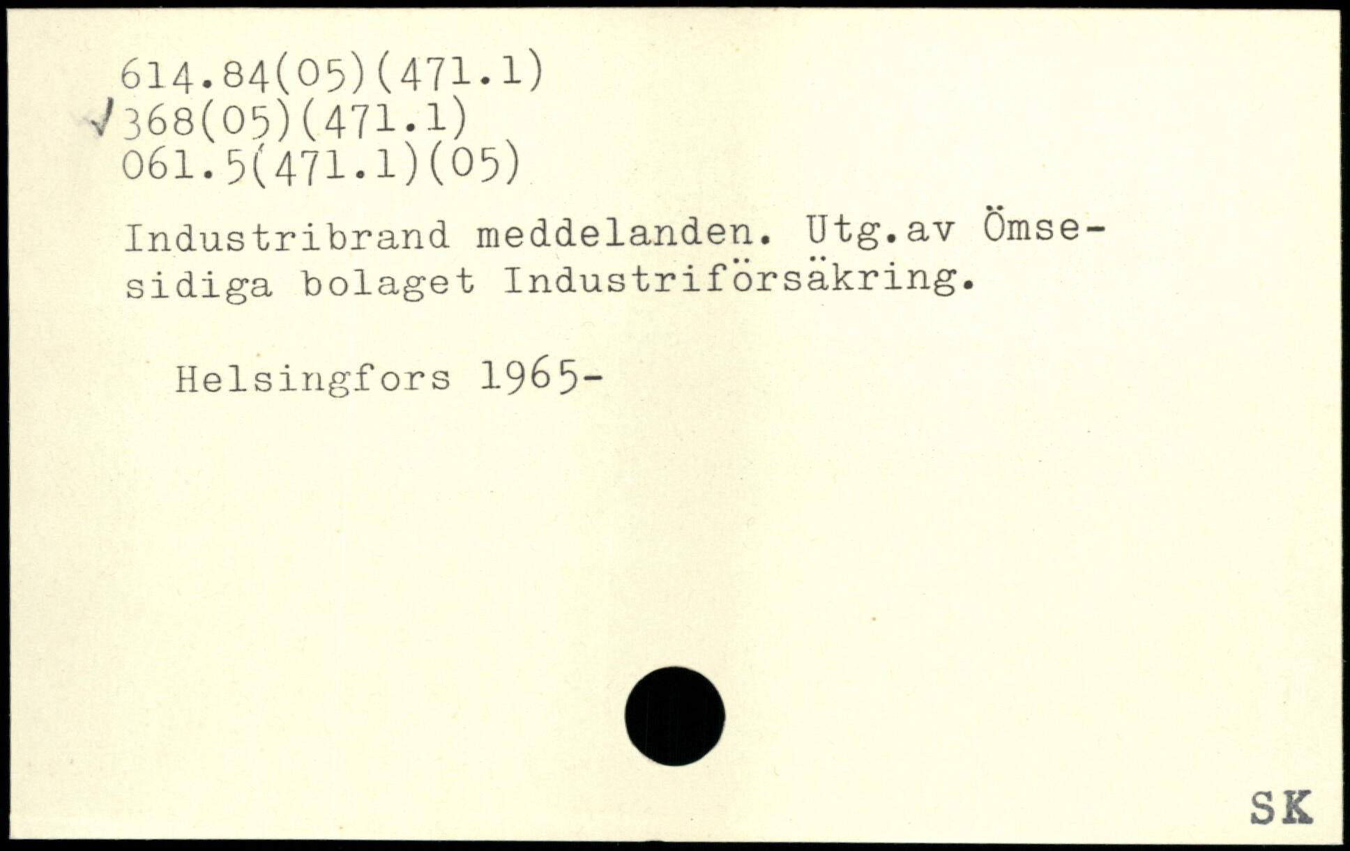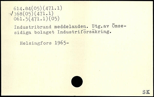 Industribrand meddelanden. Utg.av Ömsesidiga bolaget Industriförsäkring. Helsingfors 19&5"