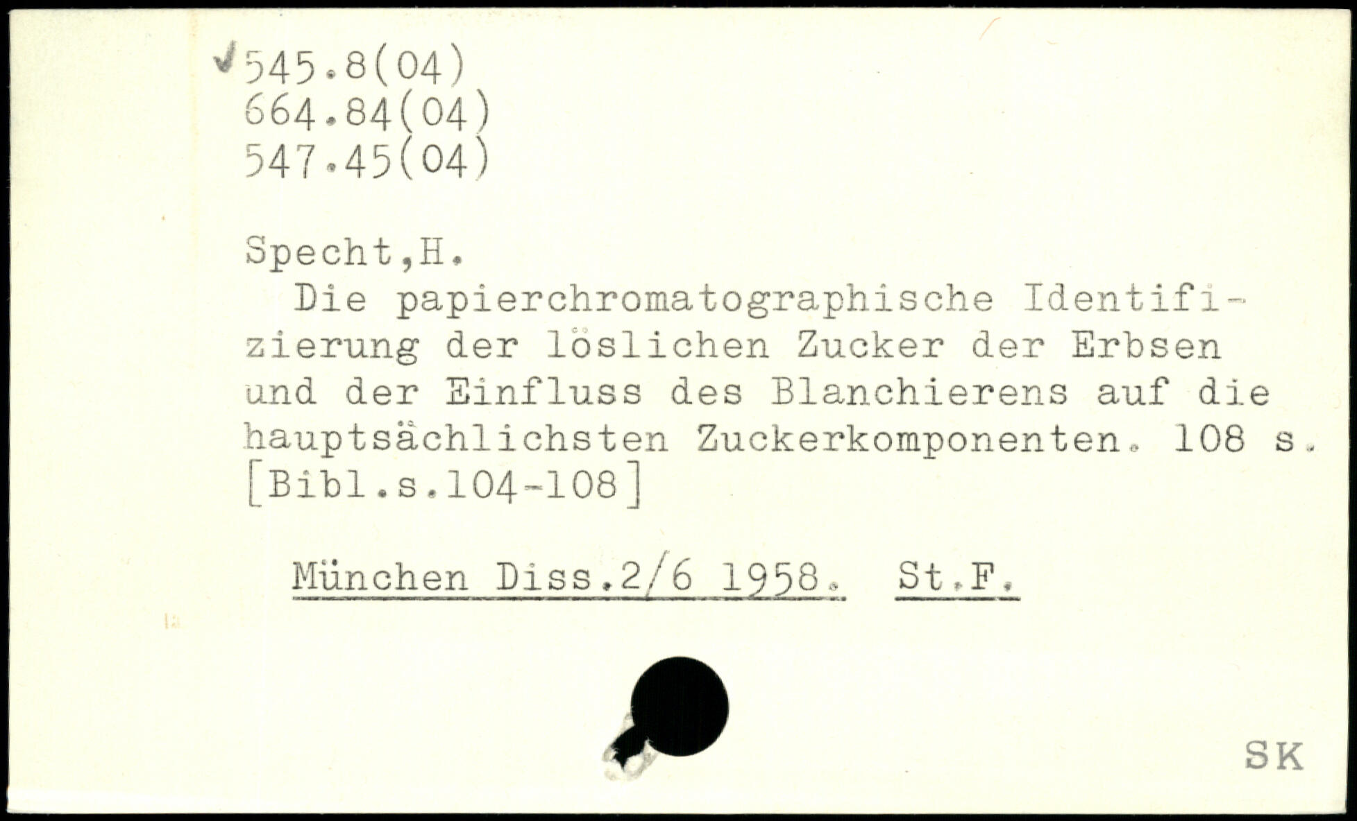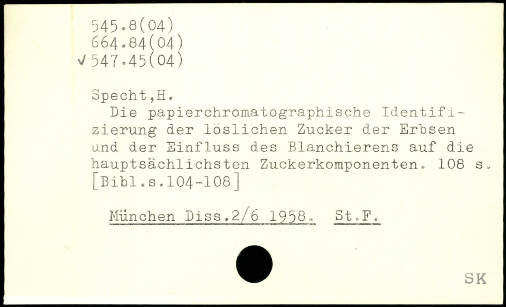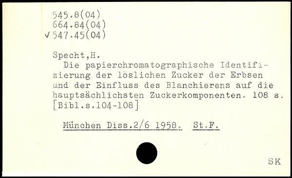 Die papierchromatographische Identifizierung der löslichen Zucker der Erbsen and der Einfluss des Blanchierens auf die hauptsächlichsten Zuckerkomponenten.