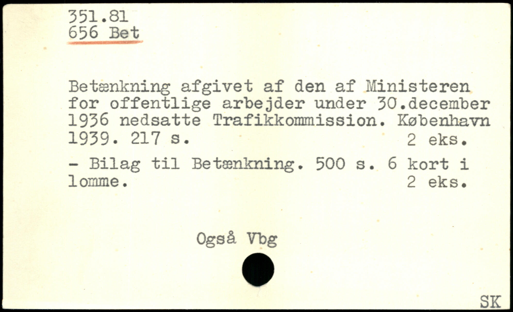 Betænkning afgivet af den af Ministeren for offentlige arbejder under 30.december 1936 nedsatte Trafikkommission.