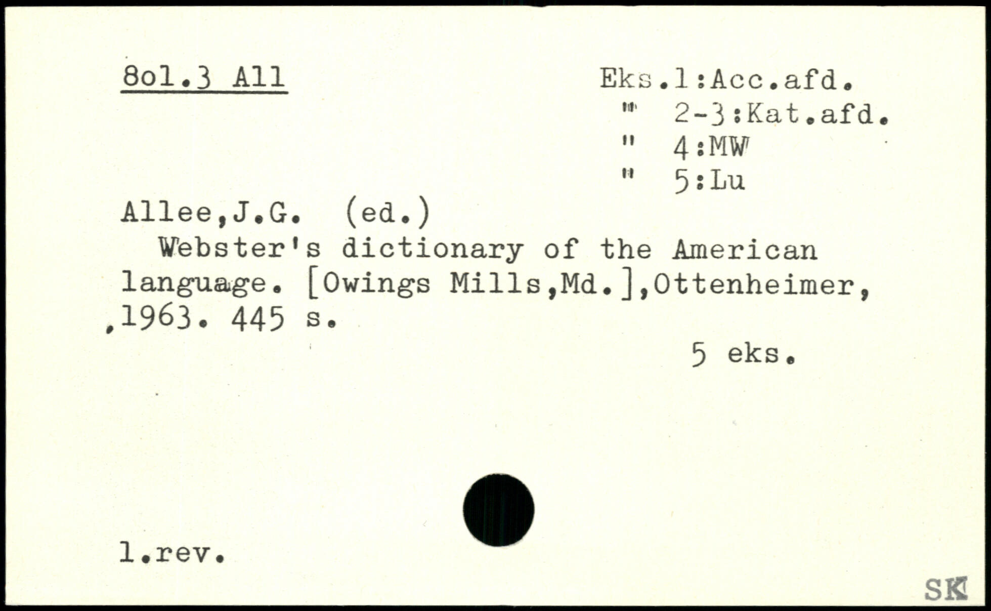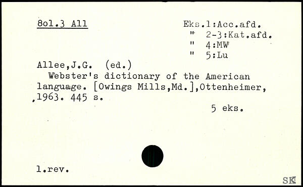 ¥ebster.s dictionary of the American language. [Owings Mills,Md.],Ottenheimer, ,1963.