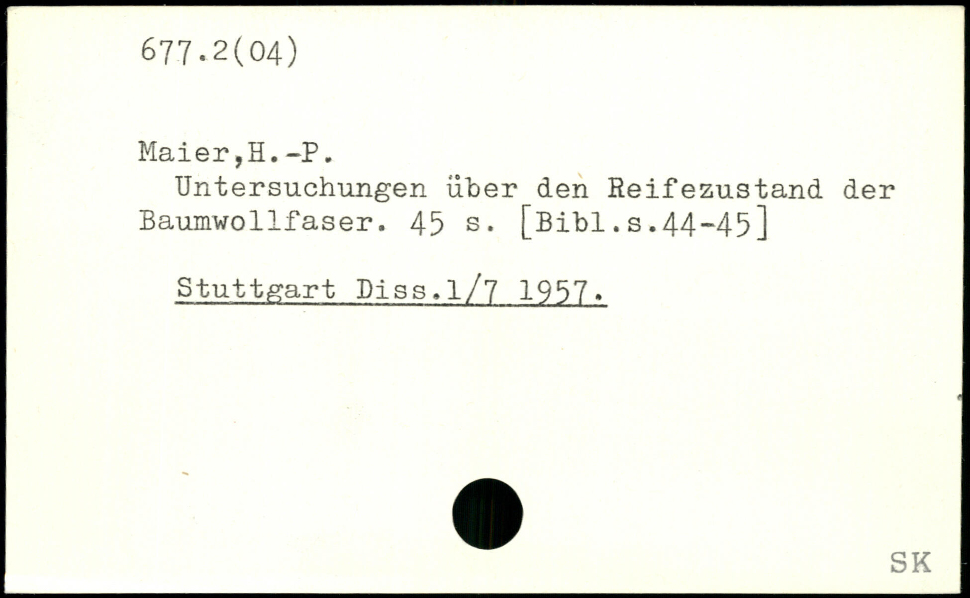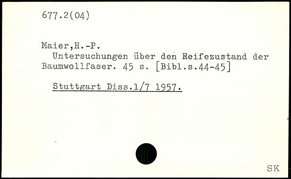 Untersuchungen über den Reifezustand der Baumwollfaser.