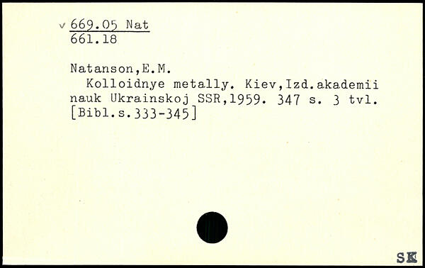 Kolloidnye metally. Kiev,Izd.akademii nauk Ukrainskoj SSR,1959.