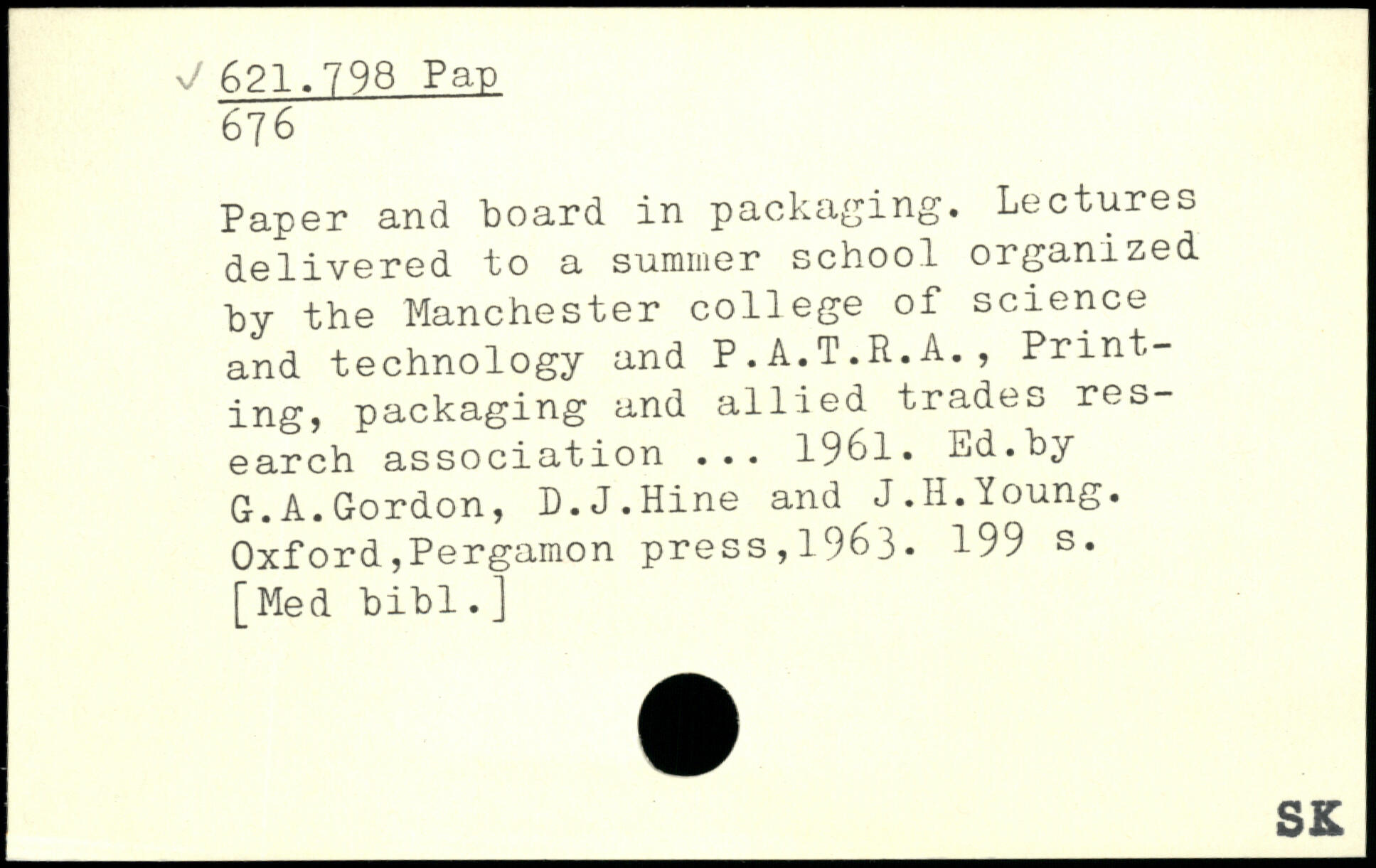 Paper and board in packaging. Lectures delivered to a summer school organized by the Manchester college of science and technology and P.A.T.R.A., Printing, packaging and allied trades research association ... 1961. Ed.by G.A.Gordon, D.J.Hine and J.H.Young.