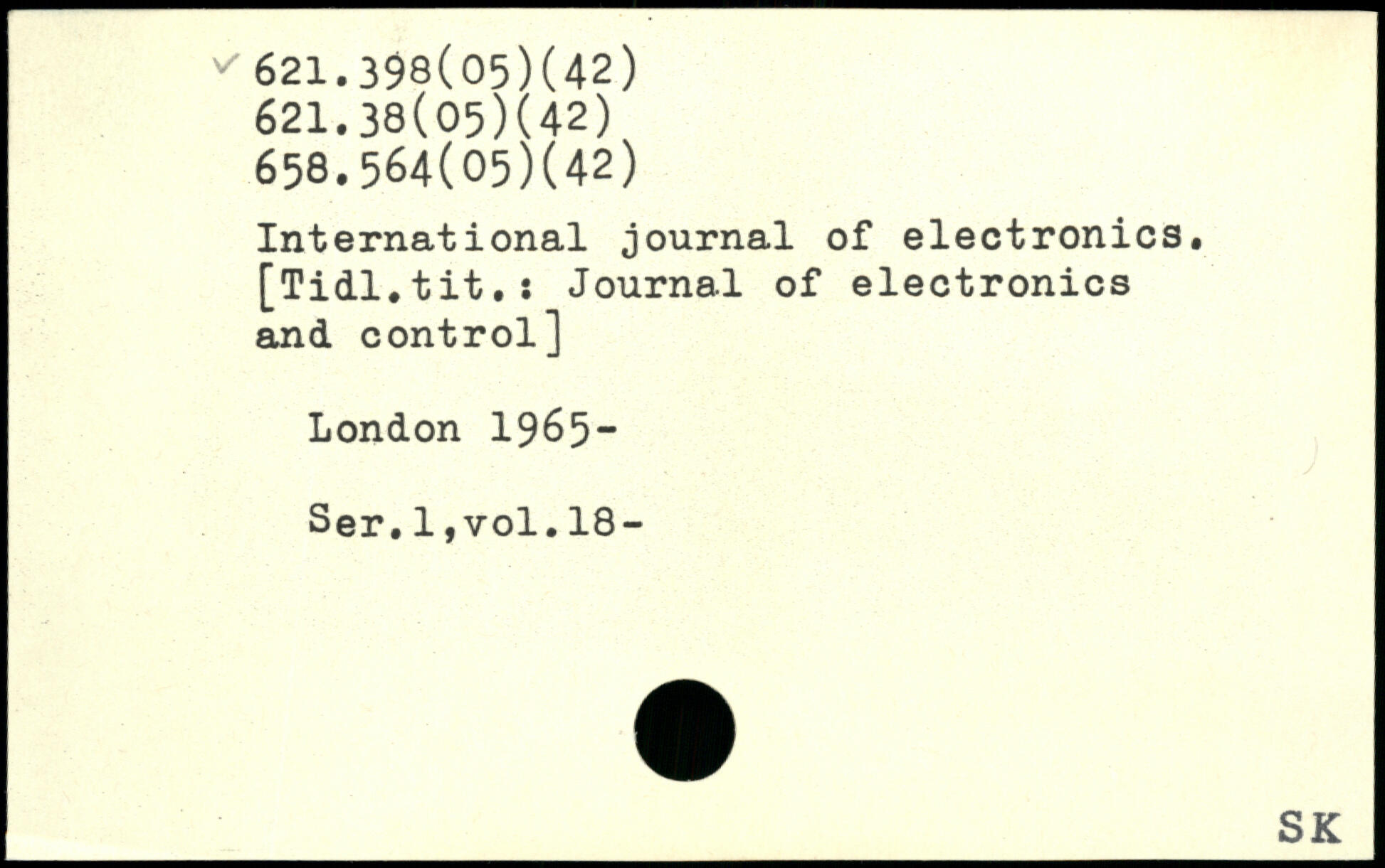 International journal of electronics. [Tidl.tit.: Journal of electronics and control]
