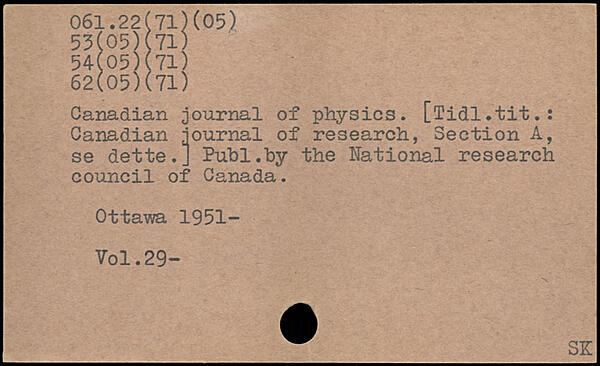 Canadian journal of physics. [Tidl.tit.s Canadian journal of research, Section A, se dette.J