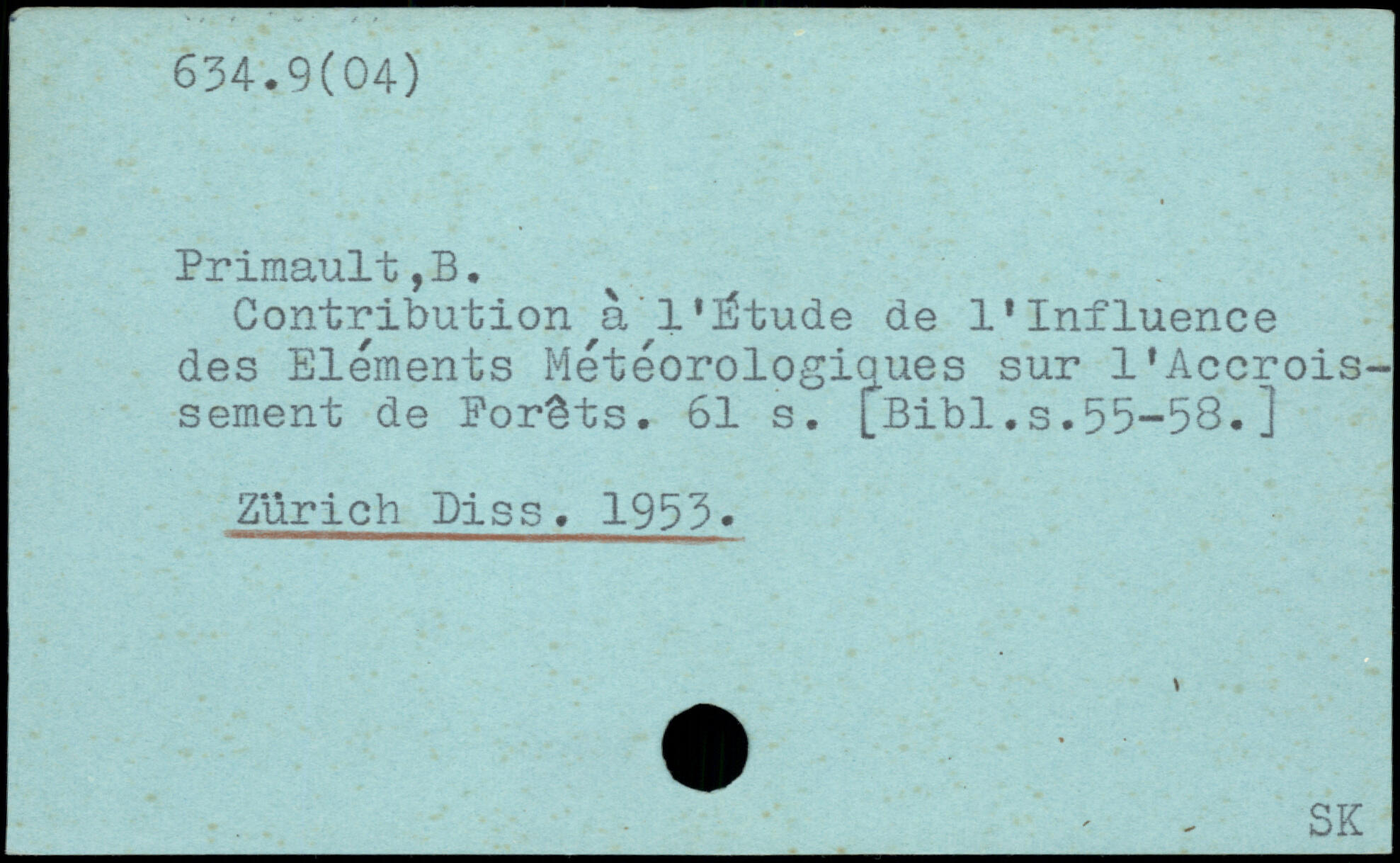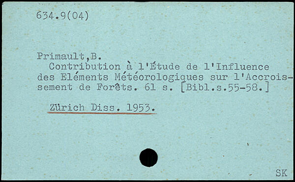 Contribution à l'Étude de l'Influence des Elements Metéorologiaues sur l'Accroissement de Forêts.