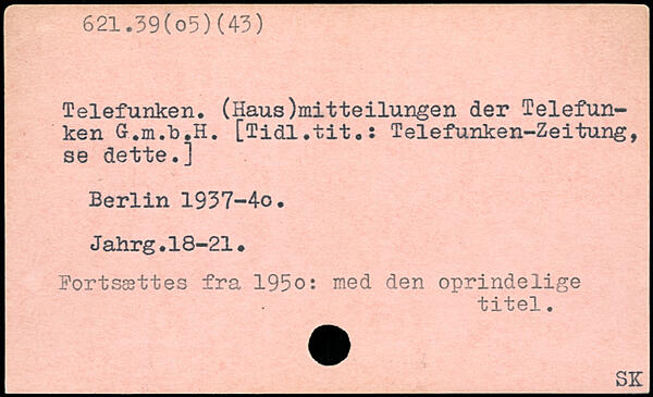 Telefuriken. (Haus)mitteilungen der Telefun-ken G.m.b.H. [Tidl.tit.: Telefunken-Zeitung, se dette.]