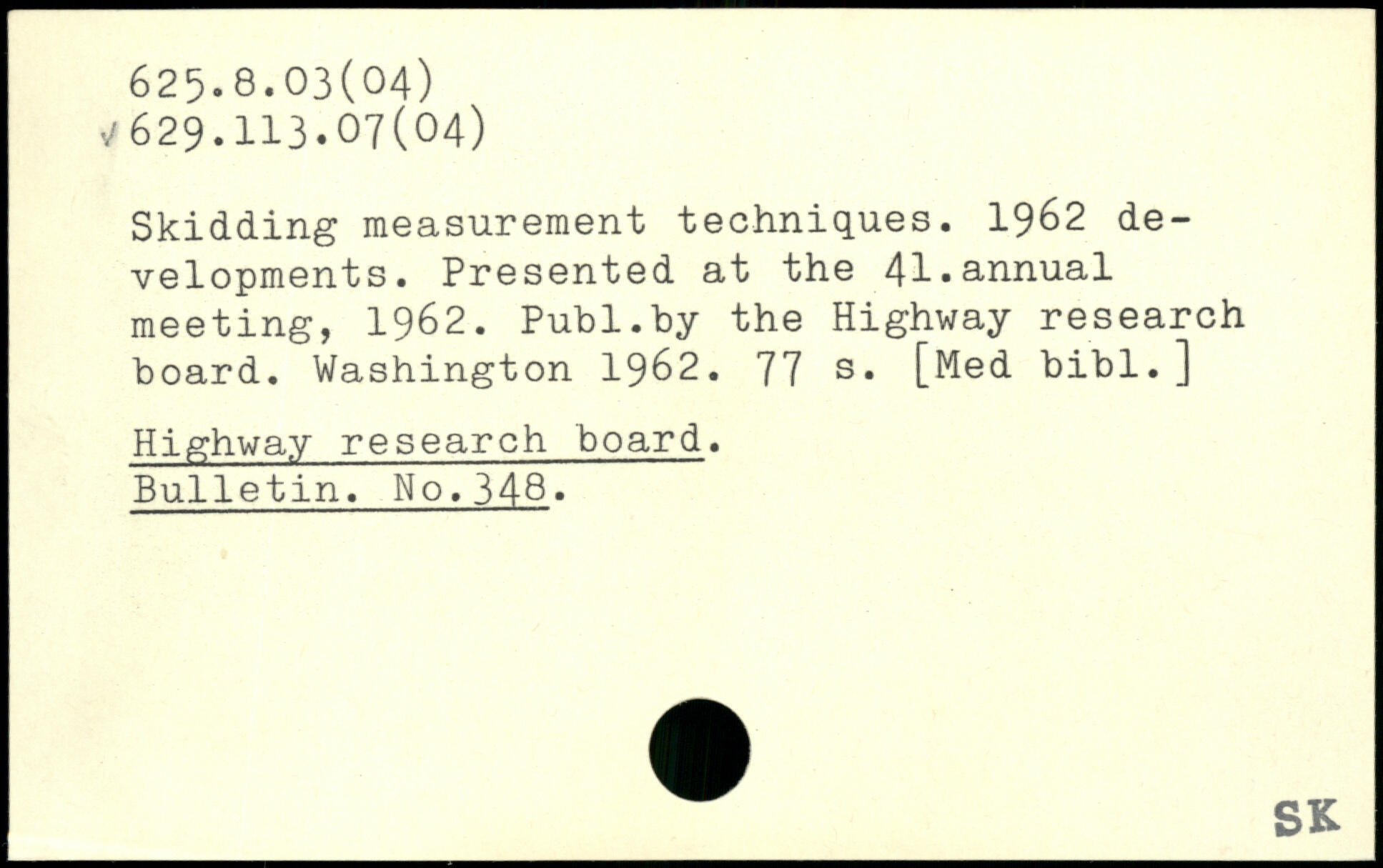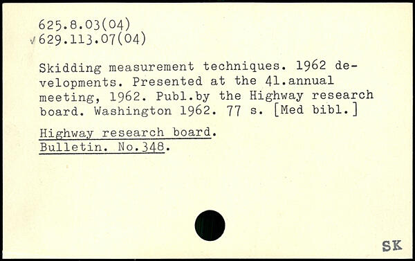 Skidding measurement techniques. 1962 developments. Presented at the 41-annual meeting, 1962.