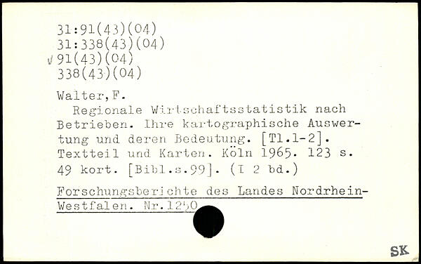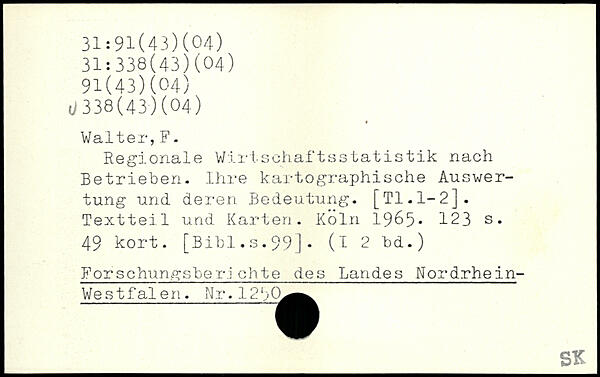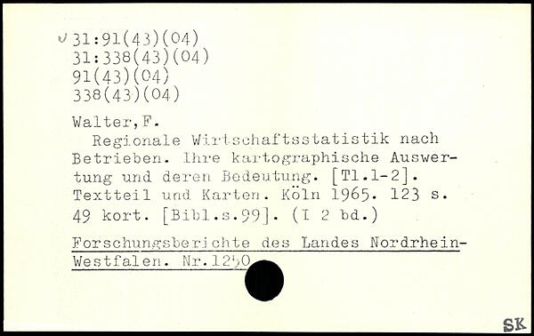 Regionale Wirtschaftsstatistik nach Betrieben. Ihre kartographische Auswertung und deren Bedeutung. [TI.1-2]. Textteil und Karten.
