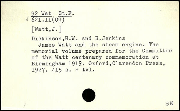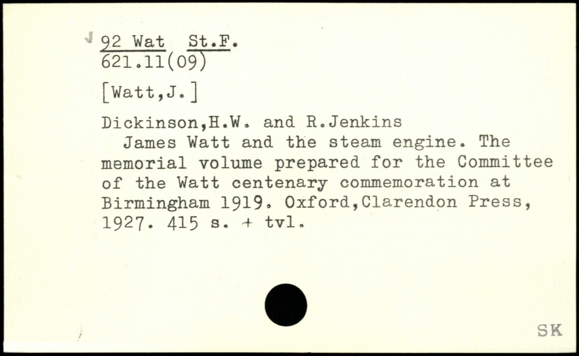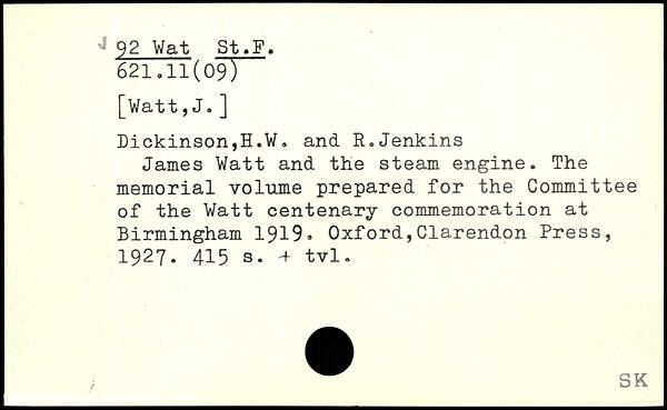 James Watt and the steam engine. The memorial volume prepared for the Committee of the Watt centenary commemoration at Birmingham 1919,.