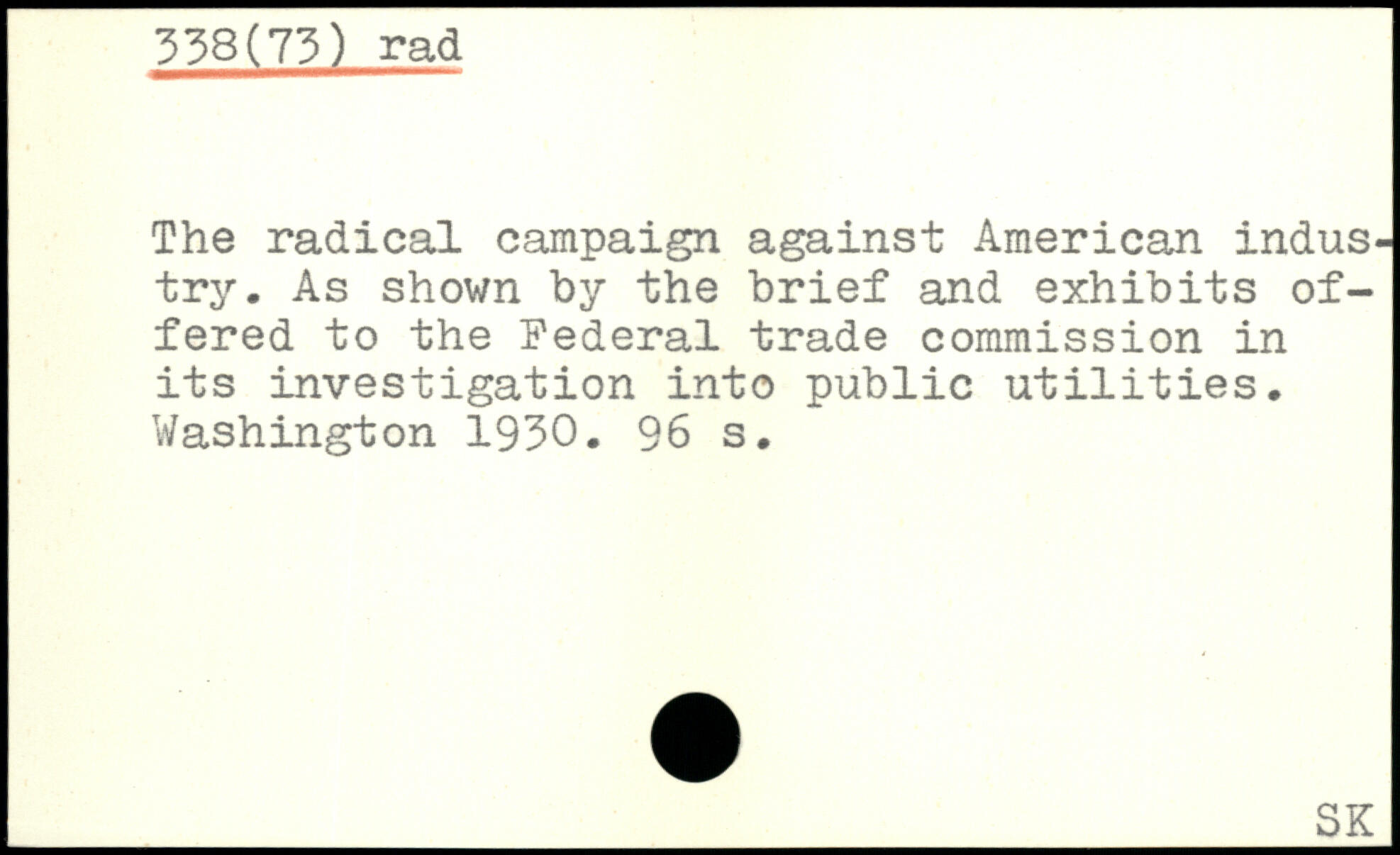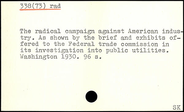 The radical campaign against American industry. As shown by the brief and exhibits offered to the Federal trade commission in its investigation into public utilities.