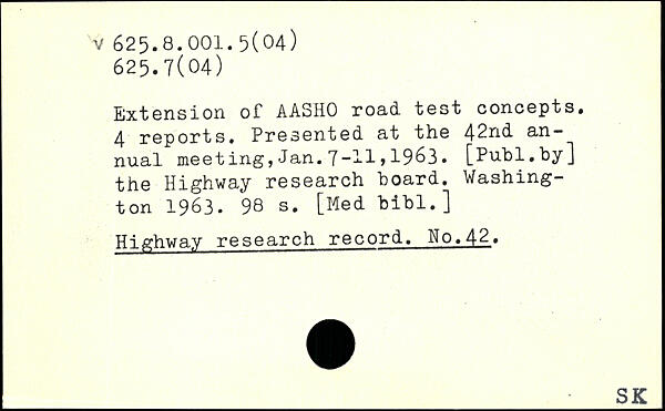 Extension of AASHO road test concepts, 4 reports. Presented at the 42nd annual meeting,Jan.7-il,1963.