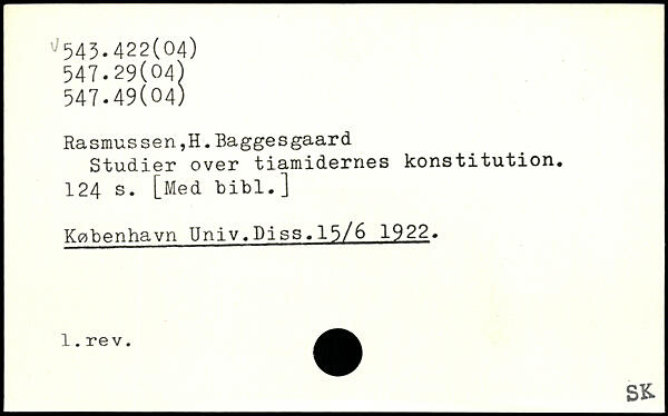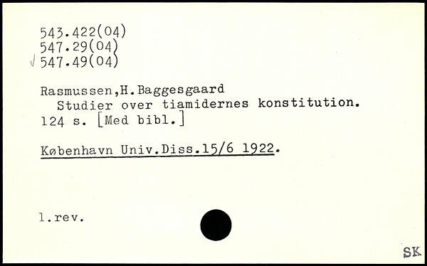 Rasmussen,H.Baggesgaard Studier over tiamidernes konstitution.
