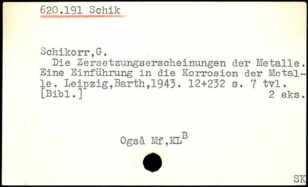 hie Zersetzungserscheinungen der Metalle. Eine Einführung in die Korrosion der Metalle.