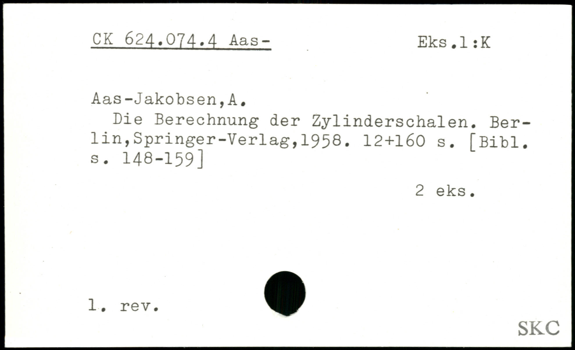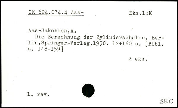 Aas -Jakobsen, A. Die Berechnung der Zylinderschalen.