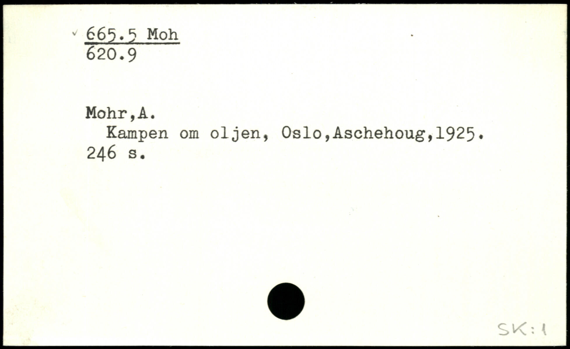 Kampen om oljen, Oslo,Aschehoug,1925. 246 s. SK: K