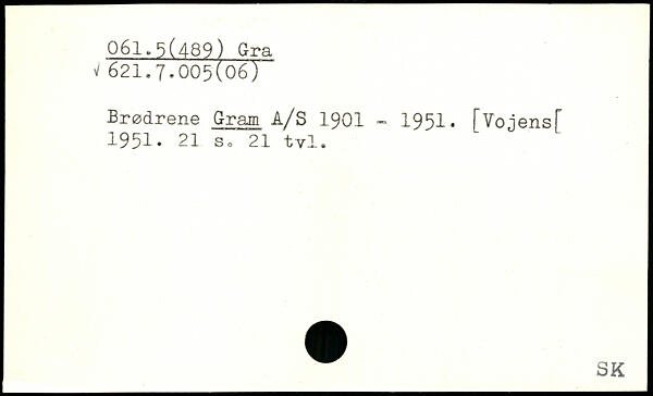 Brødrene Gram A/S 1901 , 1951. [Vojensf 1951.