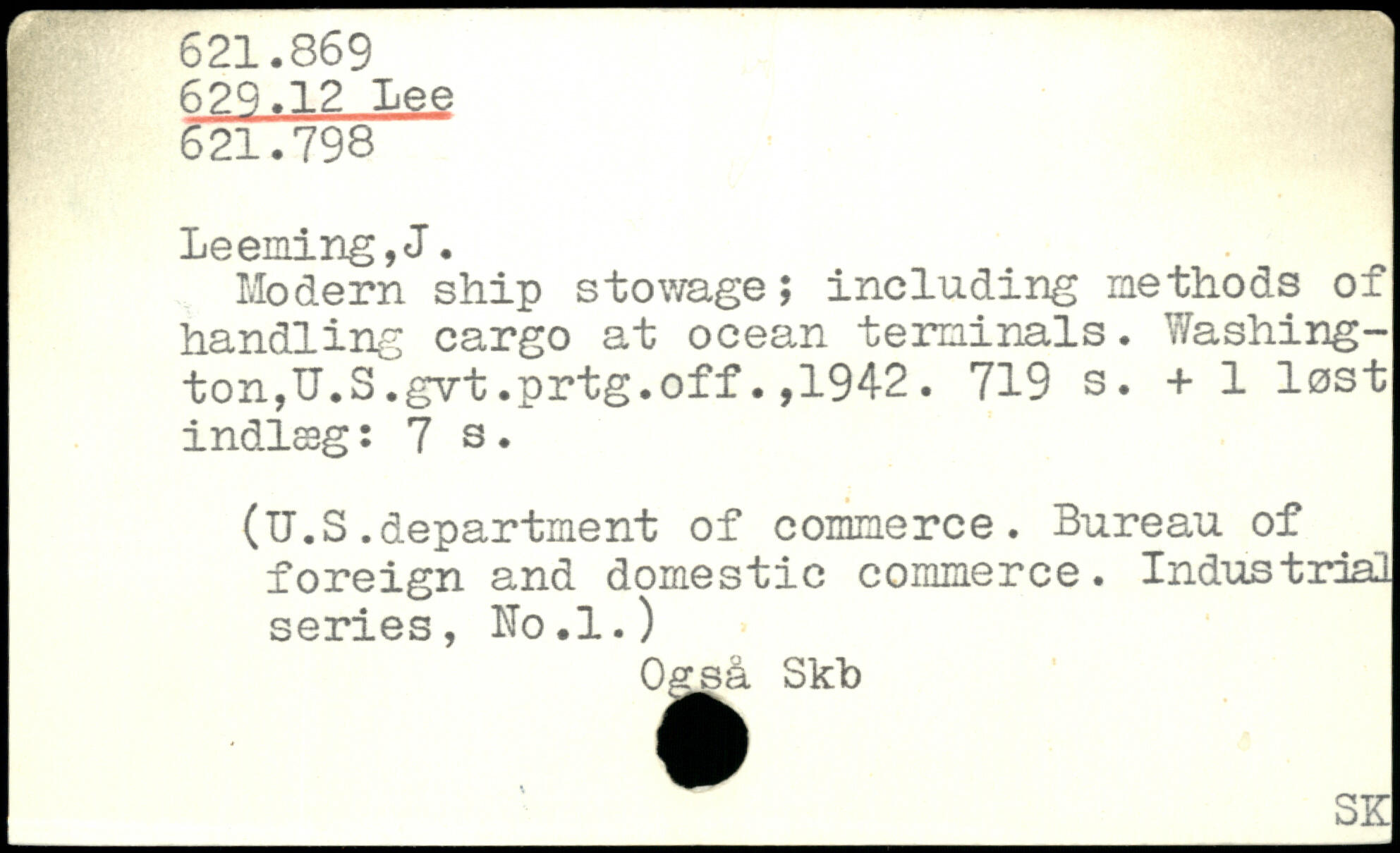 Modern ship stowage; including methods of handling cargo at ocean terminals. Washing-ton,U.S.gvt.prtg.off.,1942.