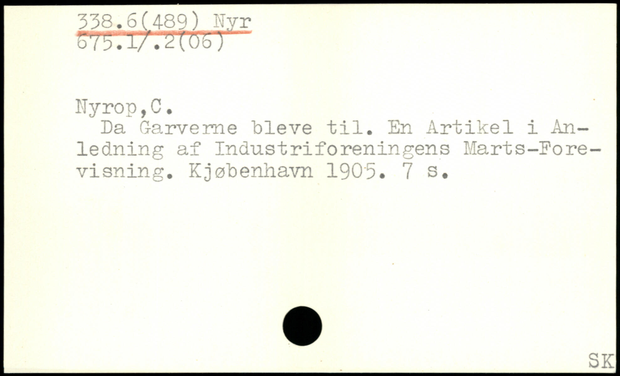 Da Garverne bleve til. En Artikel i Anledning af Industriforeningens Marts-Forevisning. Kjøbenhavn 1905.