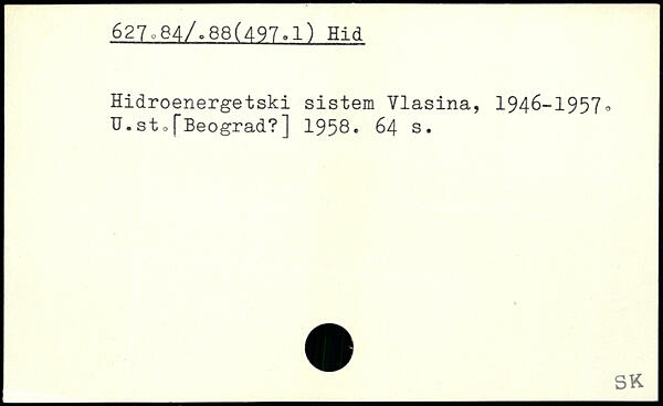 Hidroenergetski sistem Ylasina, 1946-1957. ÏÏ.sto[Beograd?] 1958.