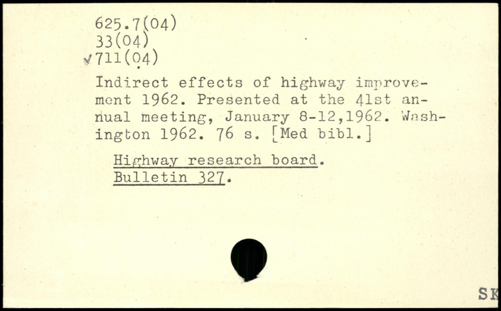 Indirect effects of highway improvement 1962. Presented at the 41st annual meeting, January 8-12,1962.