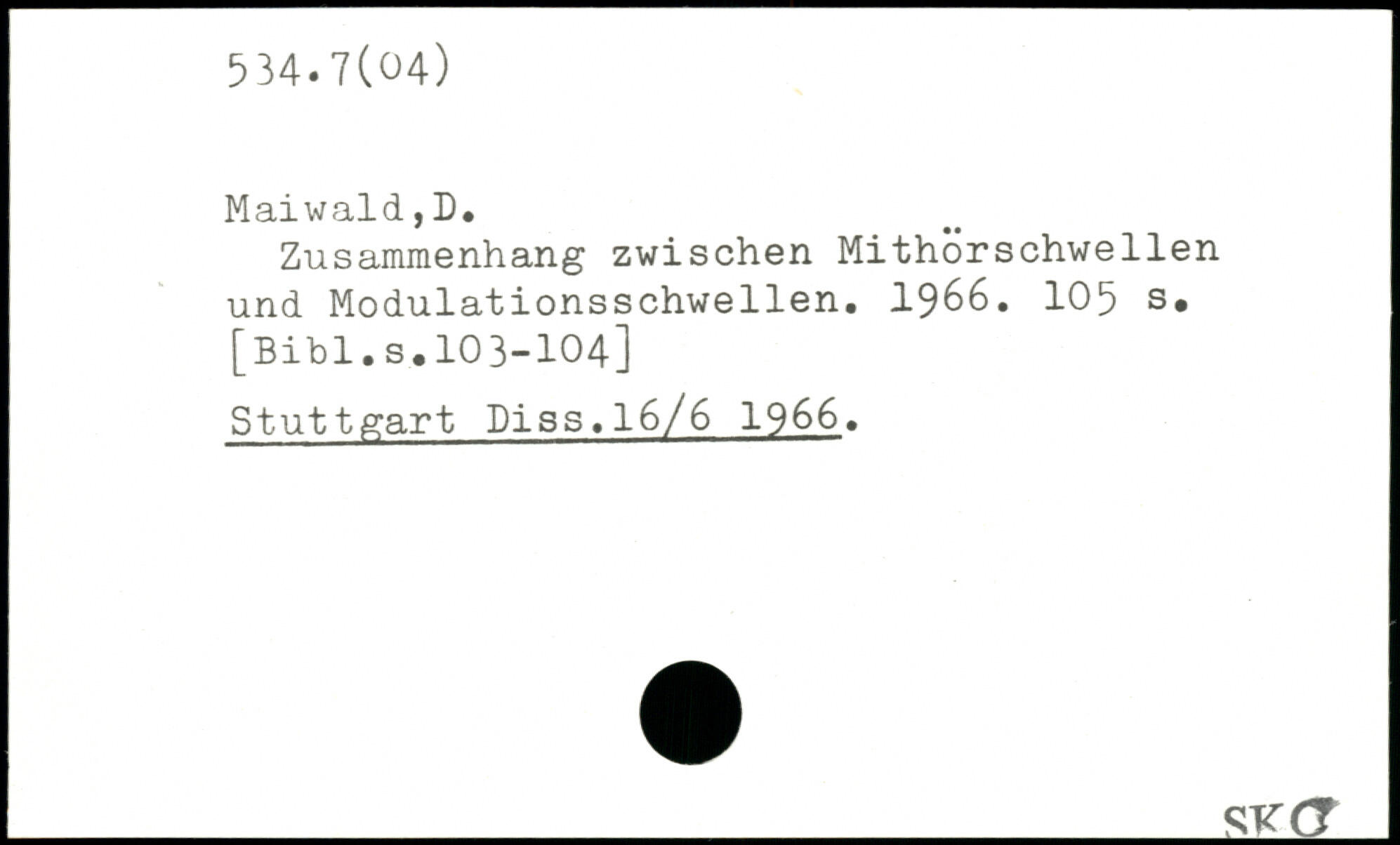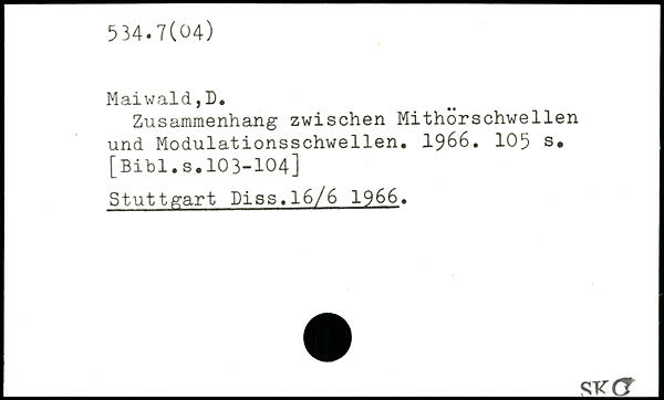 Zusammenhang zwischen Mithörschwellen und Modulationsschwellen. 1966.