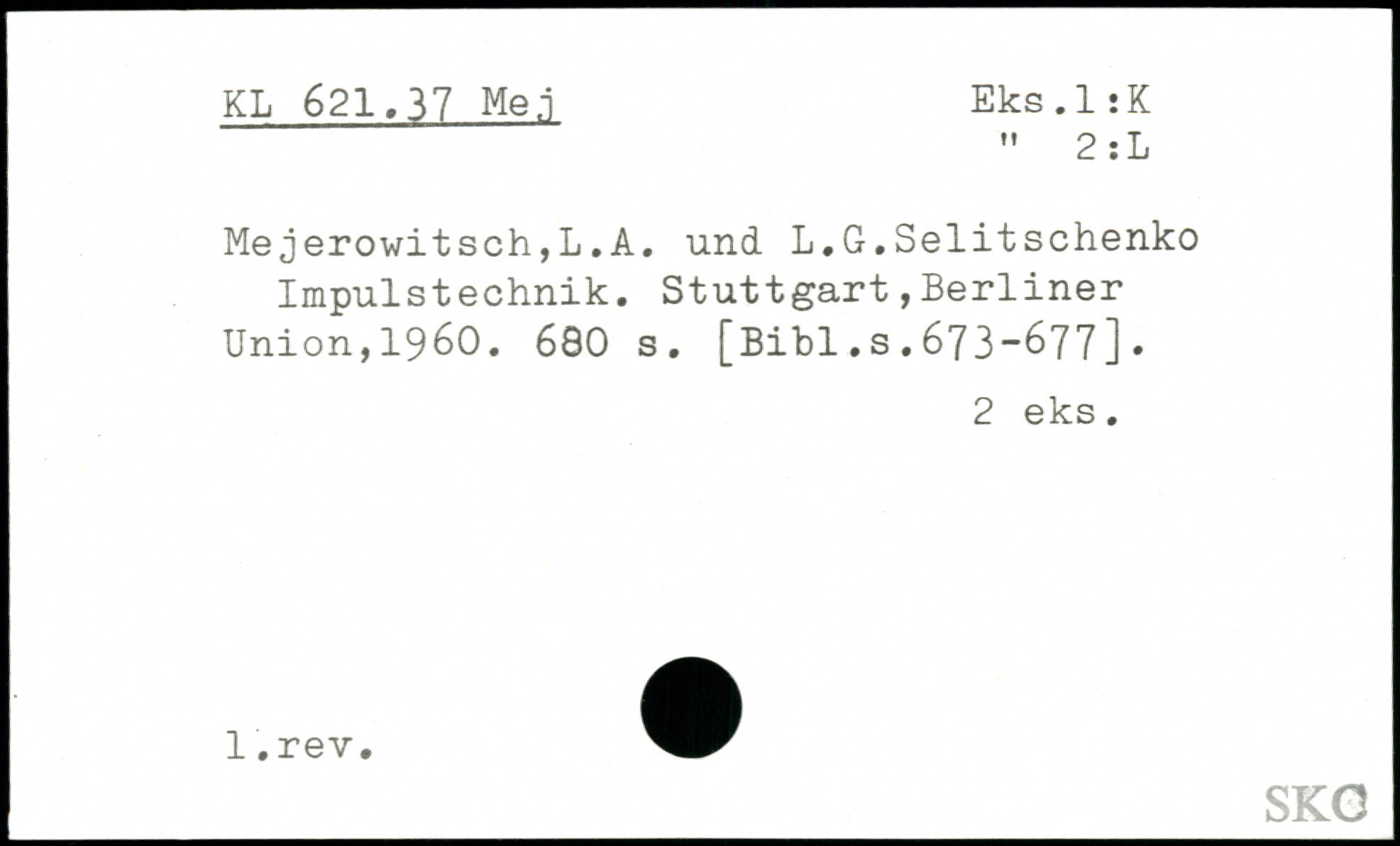 Mejerowitsch,L.A. und L.G.Selitschenko Impulstechnik.