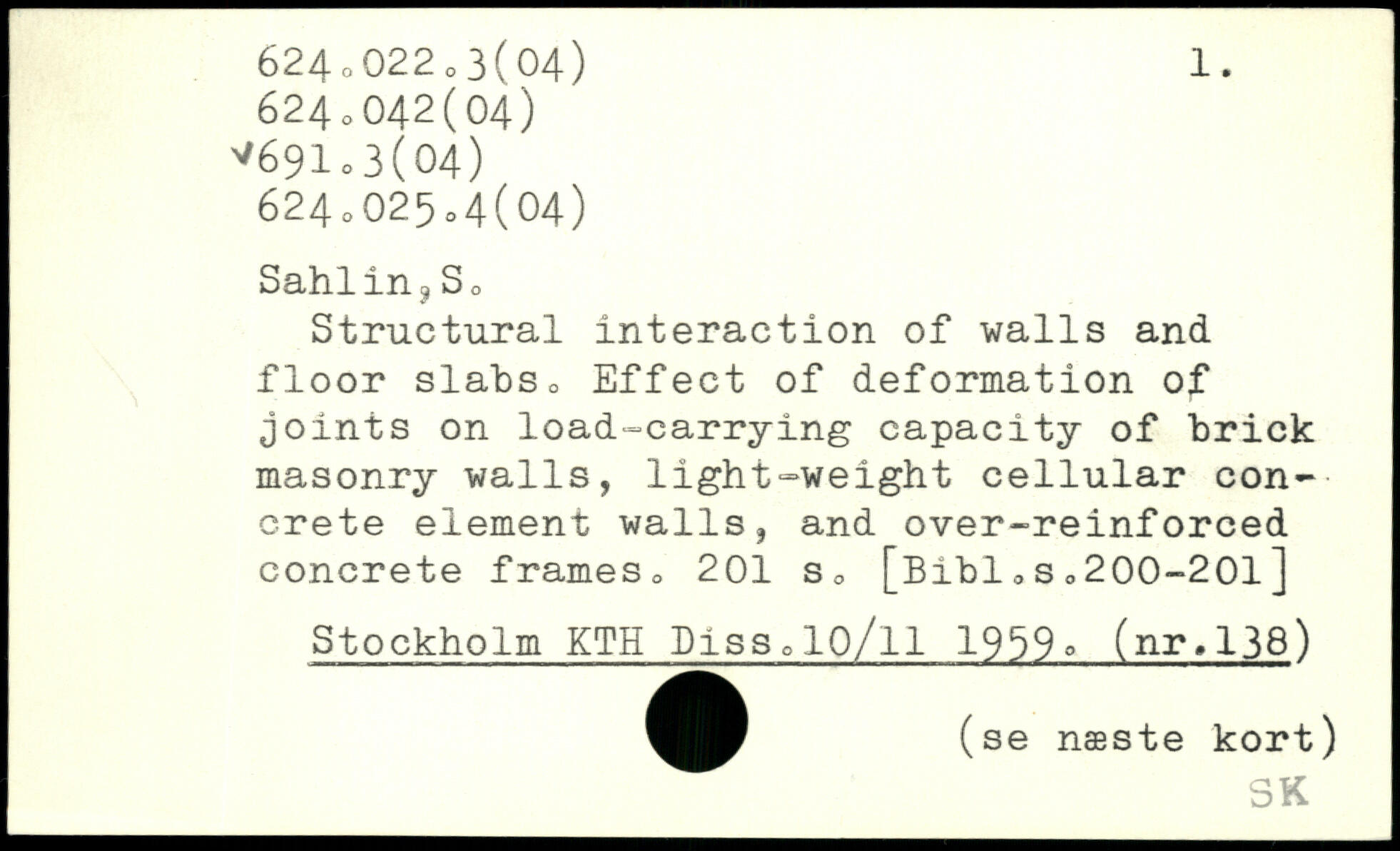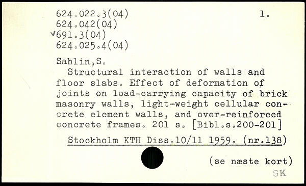 Structural interaction of walls and floor slabs. Effect of deformation of joints on load-carrying capacity of brick masonry walls, light-weight cellular concrete element walls, and over-reinforced concrete frames.