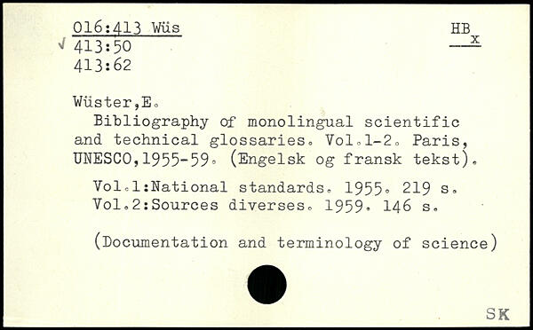 Bibliography of monolingual scientific and technical glossaries, Vol,l-2