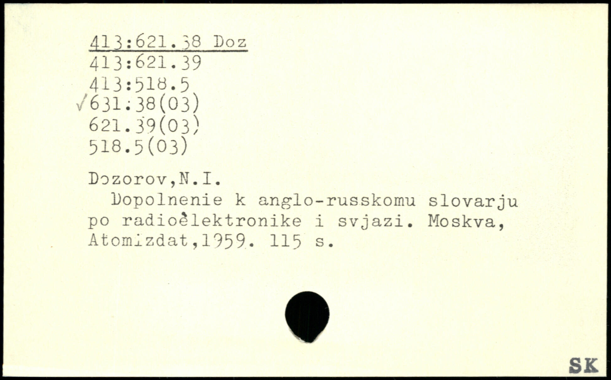 Dopolnenie k anglo-russkomu slovarju po radioélektronike i svjazi.