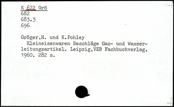Kleineisenwaren Beschläge Gas- und Wasserleitungsartikel.