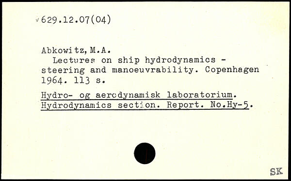 Lectures on ship hydrodynamics -steering and manoeuvrability.