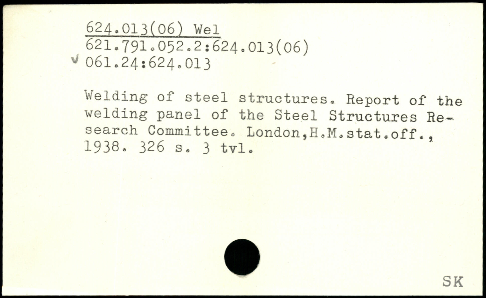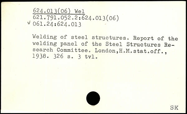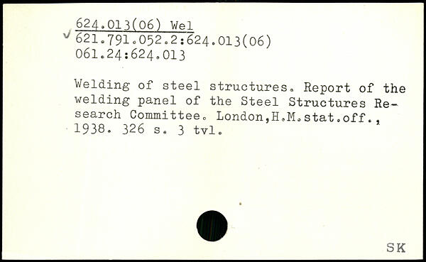 Welding of steel structures. Report of the welding panel of the Steel Structures Research Committee. London,H.M.stat.off. 1938.