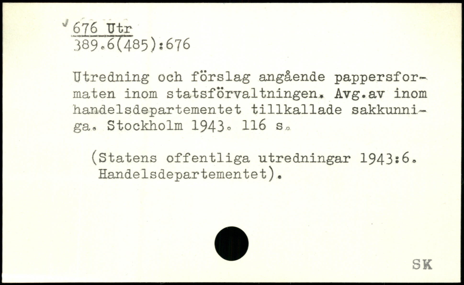 Utredning och förslag angående pappersfor-maten inom statsförvaltningen, Avg.av inom handelsdepartementet tillkallade sakkunniga