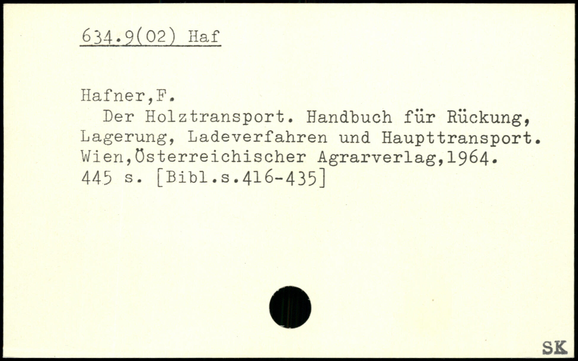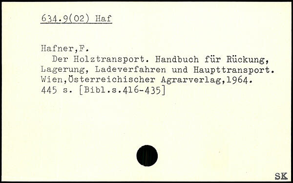 Der Holztransport. Handbuch für Rückung, Lagerung, Ladeverfahren und Haupttransport. Wien,österreichischer Agrarverlag,1964.