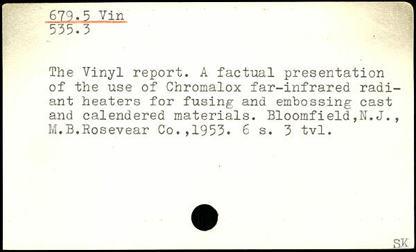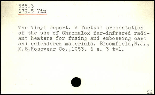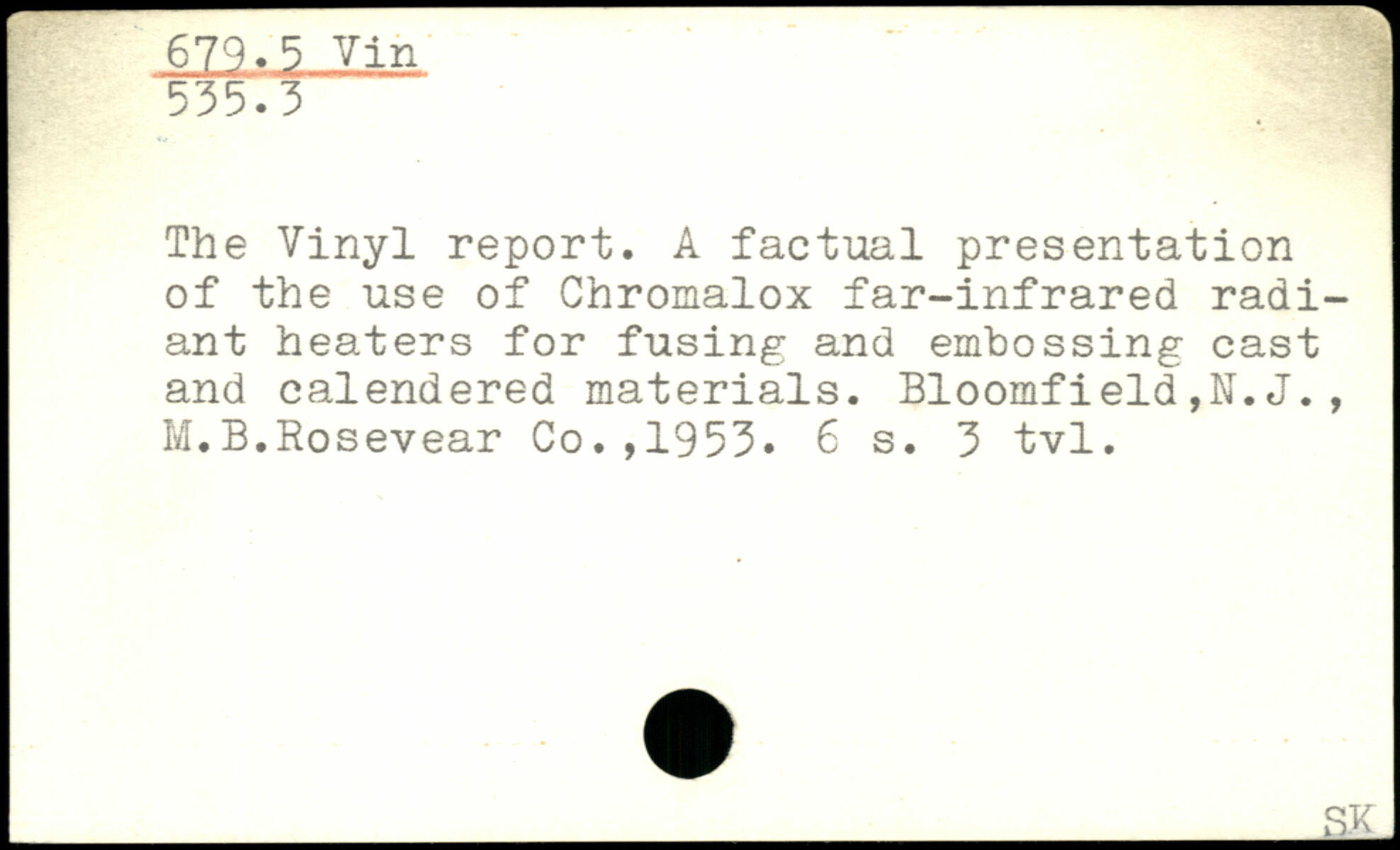 The Vinyl report. A factual presentation of the use of Chromalox far-infrared radiant heaters for fusing and embossing cast and calendered materials. Bloomfield,N.J., M.B.Rosevear Co.,1953.