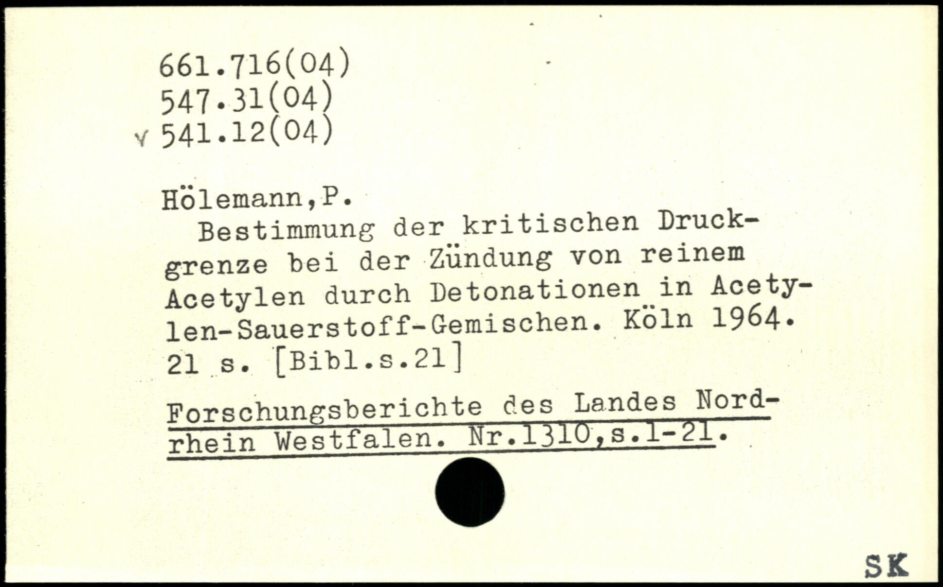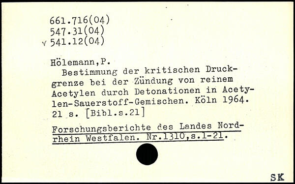 Bestimmung der kritischen Druckgrenze hei der Zündung von reinem Acetylen durch Detonationen in Acetylen-Sauerstof f-Gemischen. Köln 19o4.