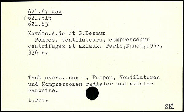 Pompes, ventilateurs, compresseurs centrifuges et axiaux.