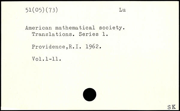 American mathematical society. Translations. Series 1. Providence,R.I. 1962.