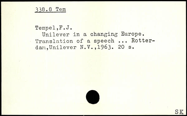 Unilever in a changing Europe. Translation of a speech ... Rotter-dan,Unilever N.V.,1963.