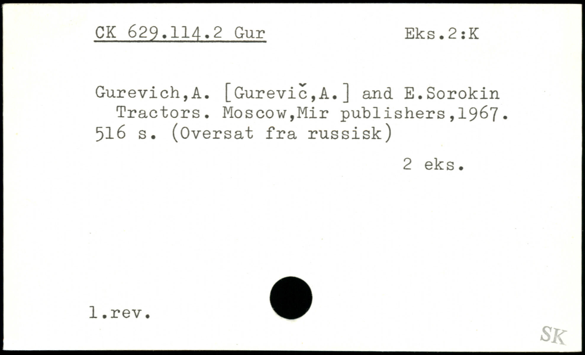 Gurevich,A. [Gurevic,A.] and E.Sorokin Tractors.