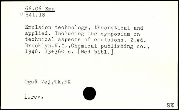 Emulsion technology, theoretical and applied. Including the symposium on technical aspects of emulsions.